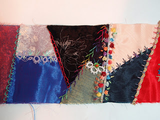 Hi - well I have finished the Crazy belt ...late yesterday afternoon ... I took it along to my embroidery group (this morning) "Stitchety Grubs" and they all loved it (one of my friends was tempted to pop it in her bag haha!) I have been madly working on completing it as I wanted to wear it tomorrow for the all day demonstrating at the big Craft Fair here. Which is a good thing to have a deadline ... it meant I got on with it (finally!).